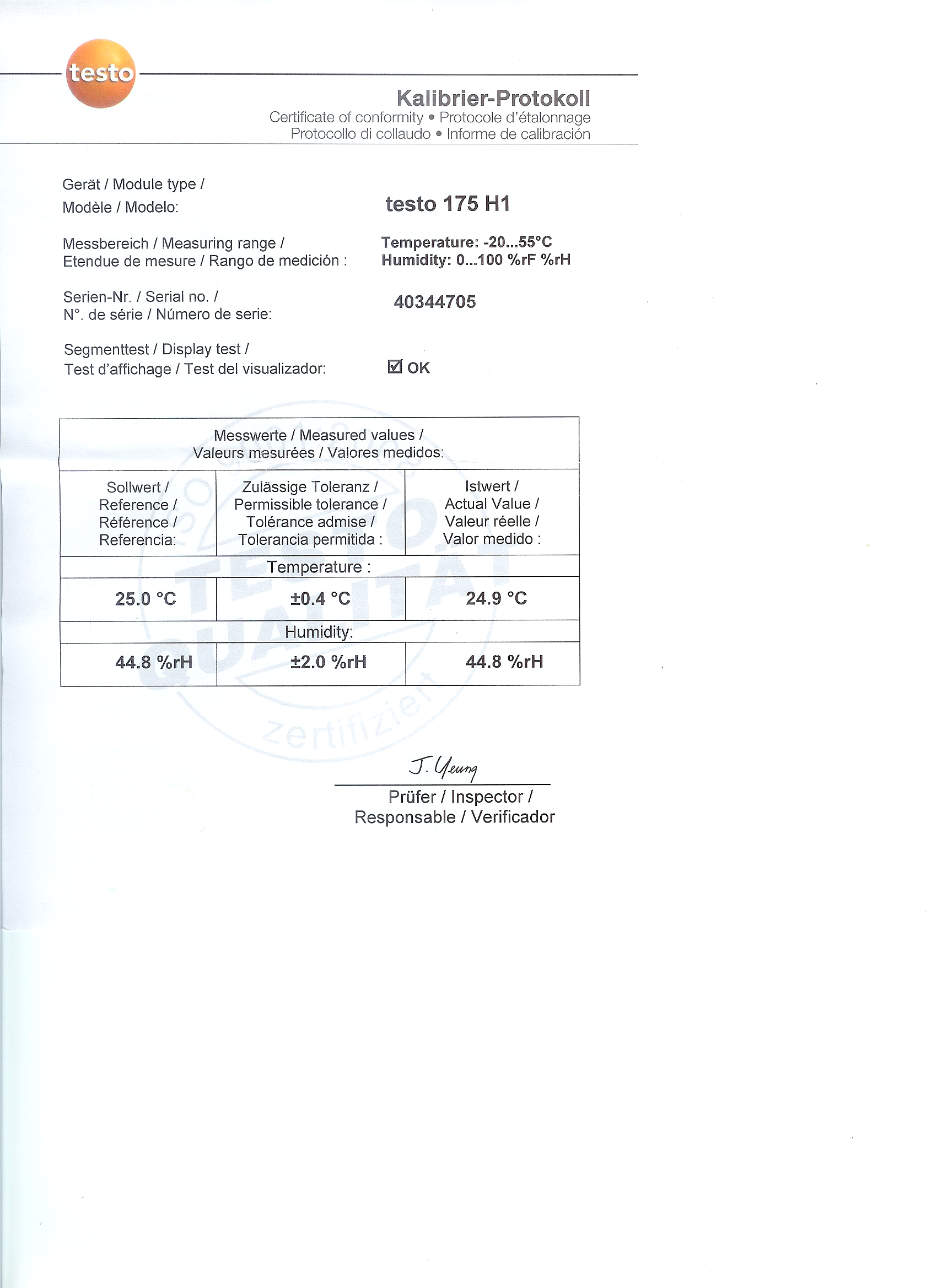 - Datenlogger testo 175 H1 mit Zertifikat (nicht älter als 12 Monate)