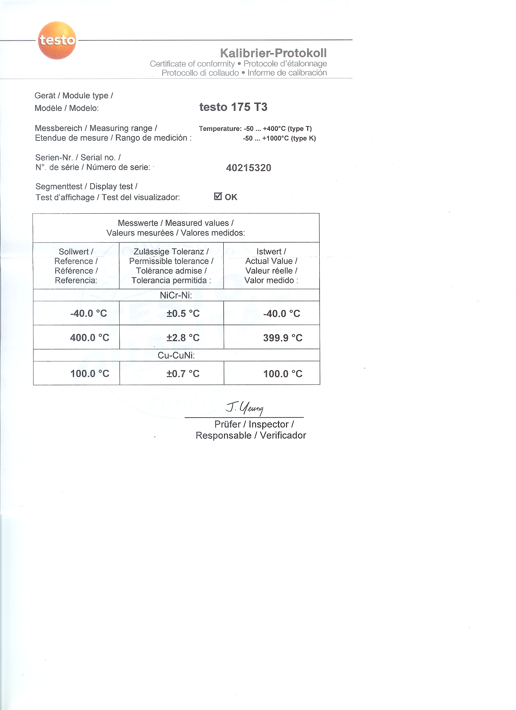 ISO-Kalibrierzertifikat Temperatur, 3 PrüfpunkteArtikelnummer: testo-0520-0153